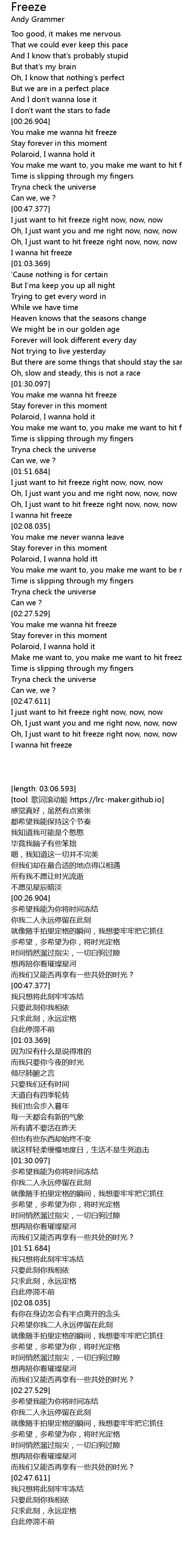 | [02:48.636] | I just want to hit freeze right now, now, now |