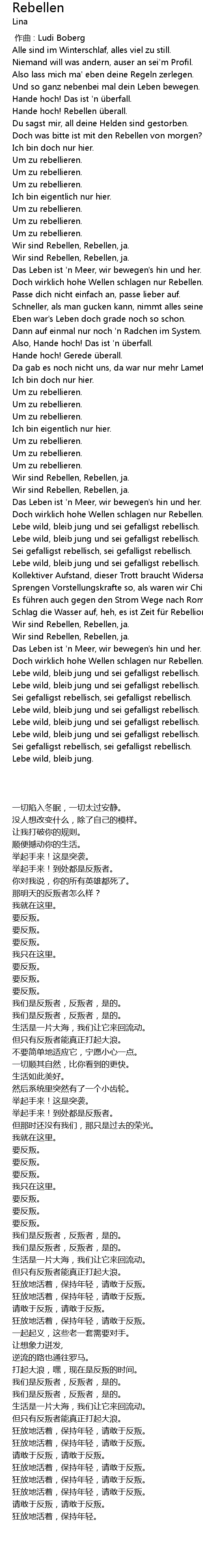 | [02:35.37] | Sei gefalligst rebellisch, sei gefalligst rebellisch. |