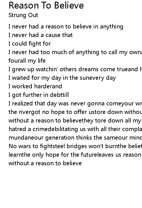 No wars to fightsteel bridges won't burnthe beliefs we upholdare lies we never learnthe only hope for the futureleaves us reason to grievewhat's a generation without a reason to believe |