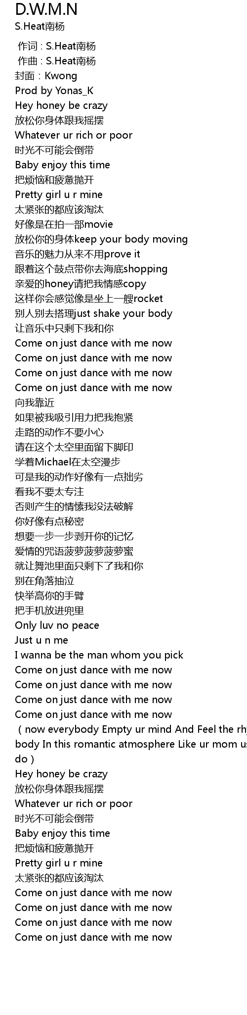 | [02:14.59] | (now everybody Empty ur mind And Feel the rhythm Just shake your body In this romantic atmosphere Like ur mom used to say Like ur dad used to do) |