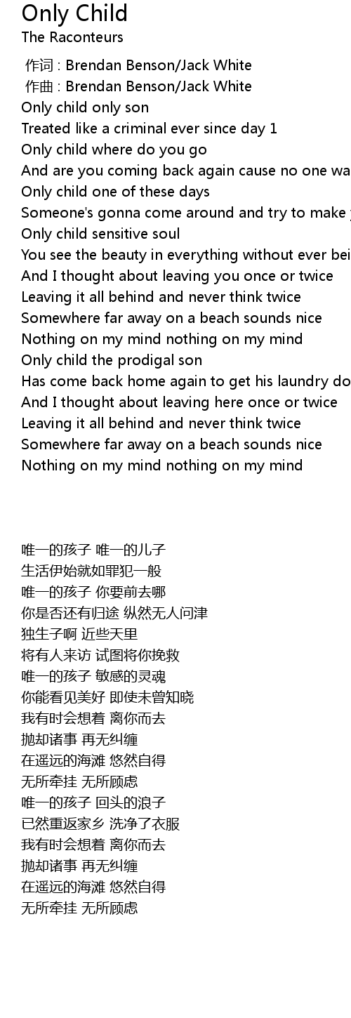 | Song | Only Child |