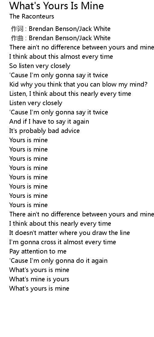 | [01:59.75] | There ain' t no difference between yours and mine |