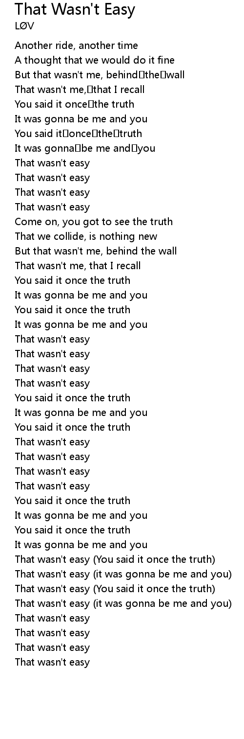 | [03:00.900] | That wasn' t easy it was gonna be me and you |