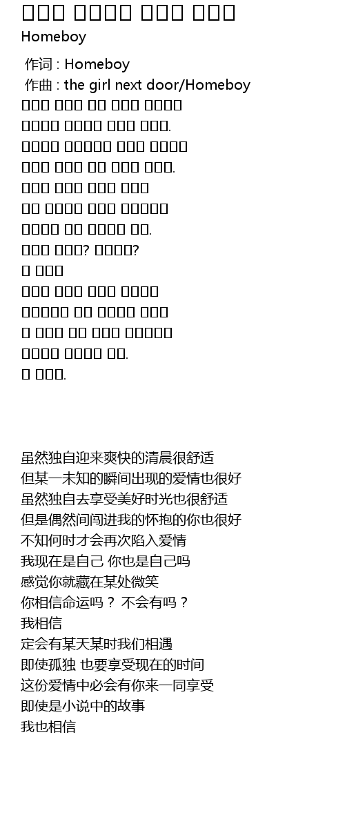 | [00:01.000] | zuò qǔ : the girl next door Homeboy |