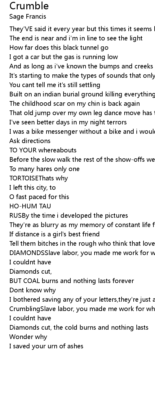 CrumblingSlave labor, you made me work for what |