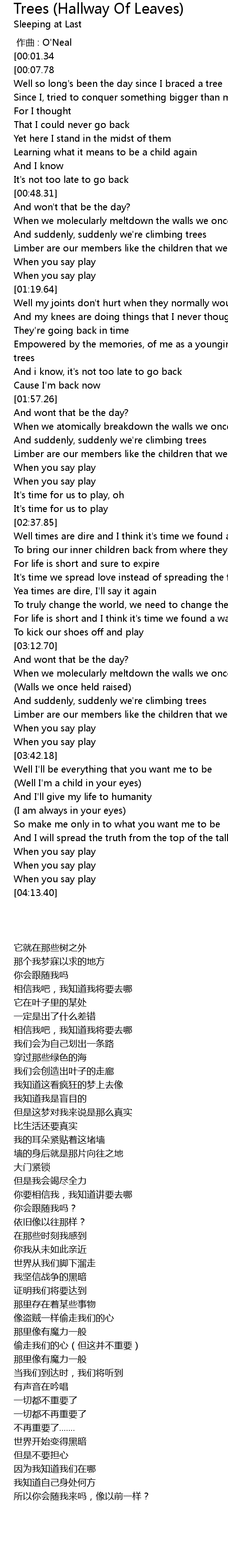 | [01:01.53] | And suddenly, suddenly we're climbing trees |