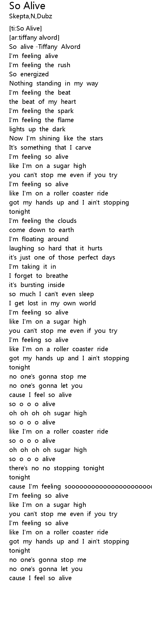 | [00:43.818] | I'm feeling so alive |
