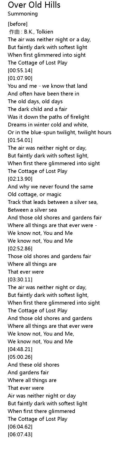 | [00:00.00] | 作曲 : B.K., Tolkien |