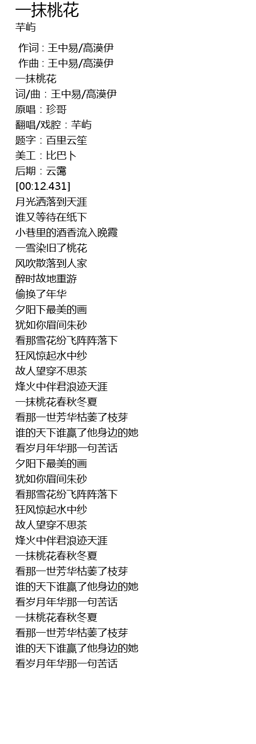| [02:06.684] | 一抹桃花春秋冬夏 |