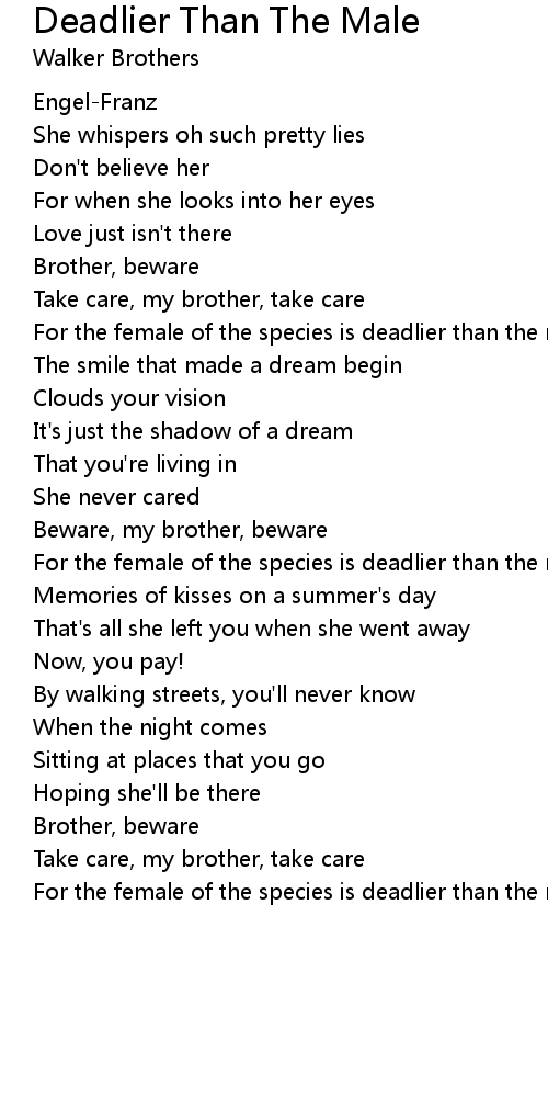 For the female of the species is deadlier than the male |