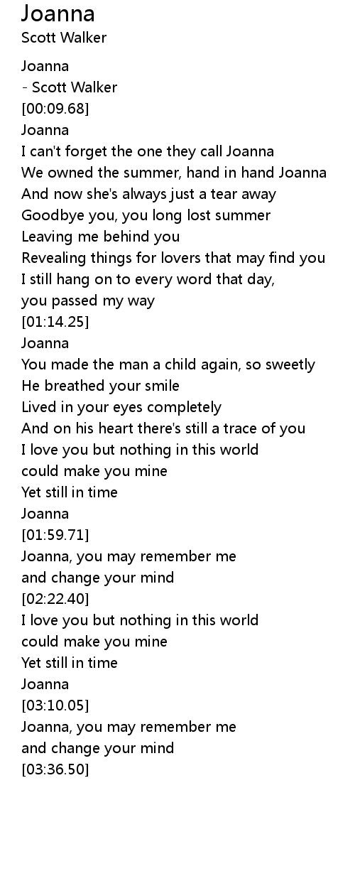 I can't forget the one they call Joanna |
