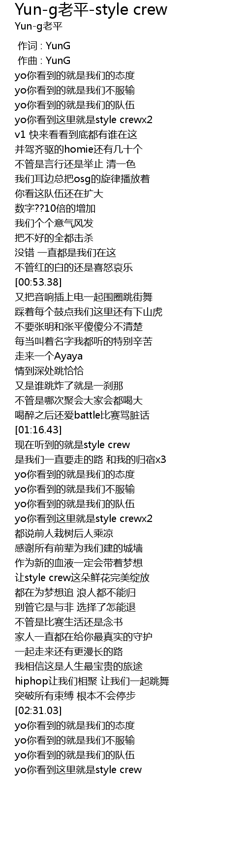| [02:40.38] | yo nǐ kàn dào zhè lǐ jiù shì style crew |