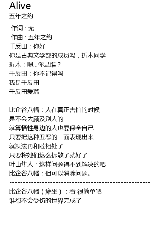 | [00:01.000] | zuò qǔ : wǔ nián zhī yuē |