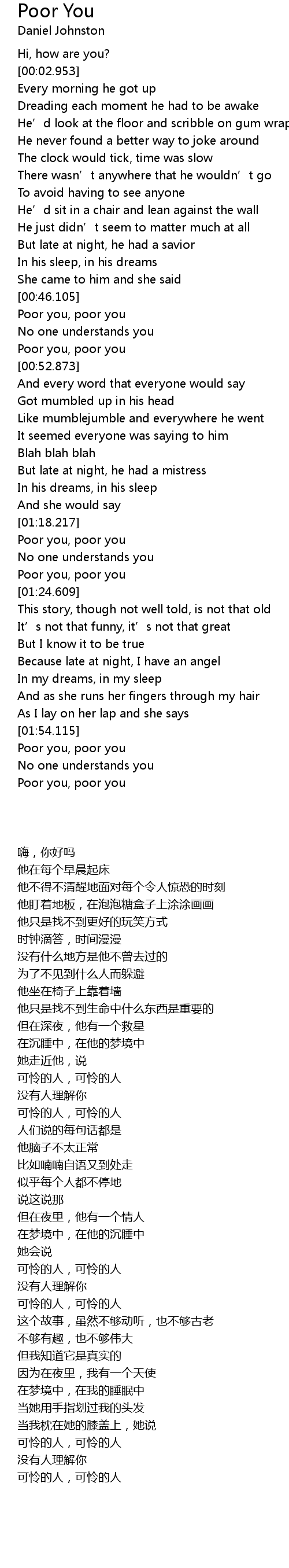| [00:46.449] | Poor you, poor you |