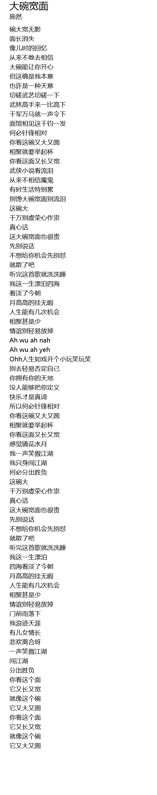 | [00:54.685] | 别馋大碗宽面别流泪 |