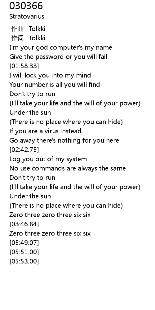 | [03:03.35] | (I'll take your life and the will of your power) |