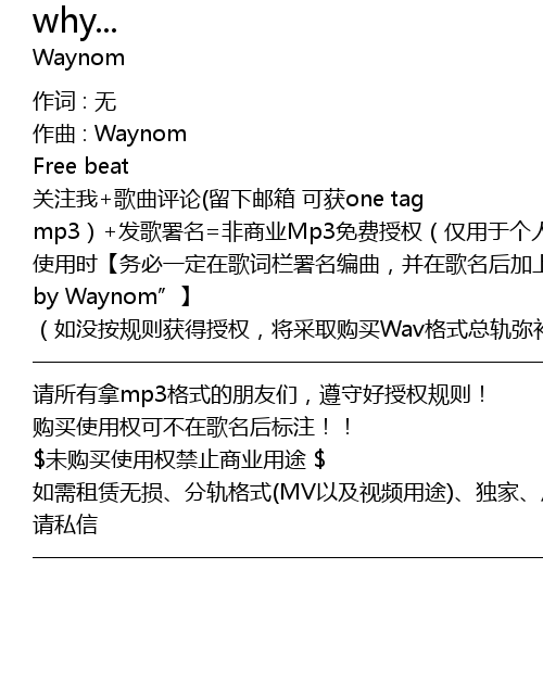 | 使用时【务必一定在歌词栏署名编曲,并在歌名后加上“Prod by Waynom”】 | |