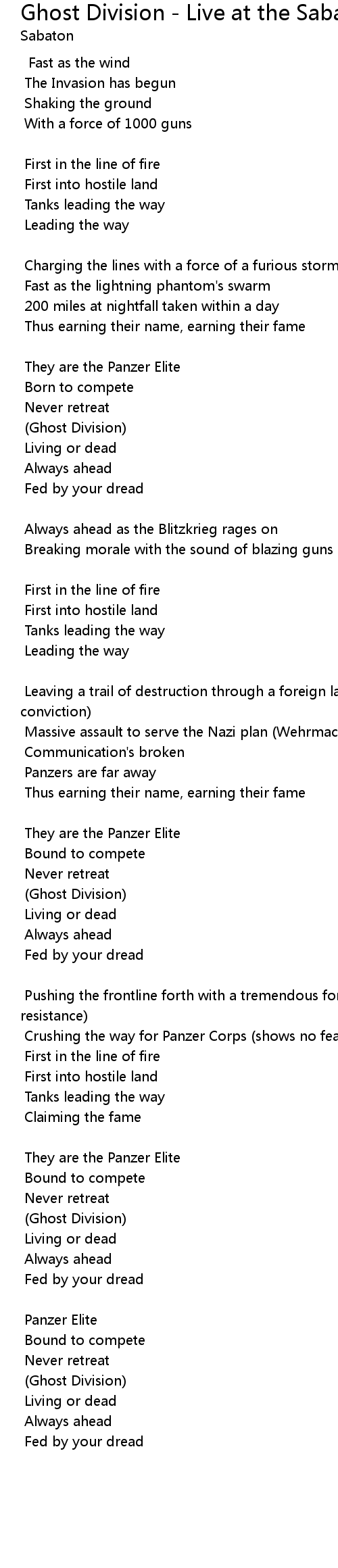 Ghost Division - Live at the Sabaton Cruise, Dec. 2010 Lyrics