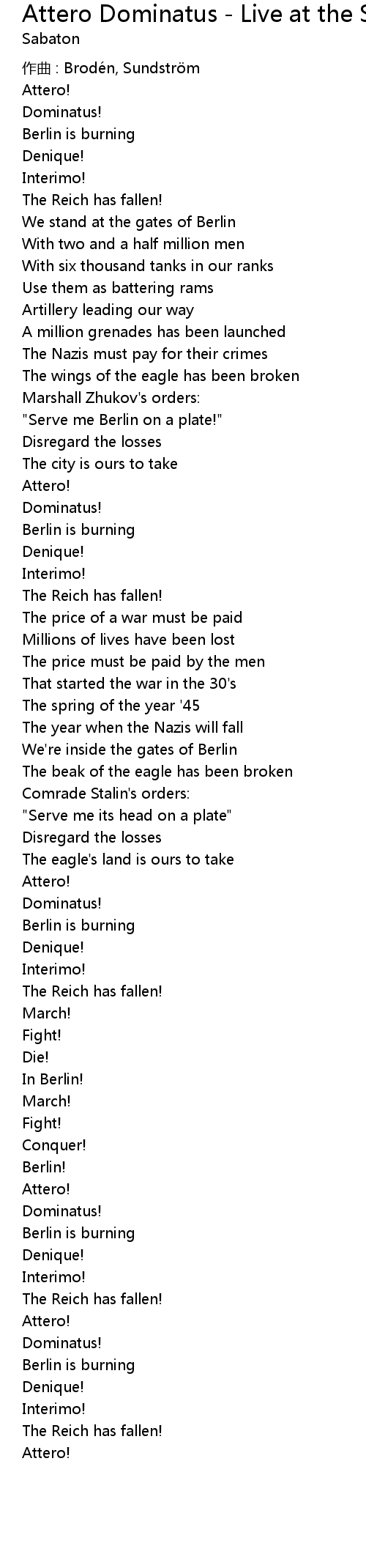 | Song | Attero Dominatus - Live at the Sabaton Cruise, Dec. 2010 |