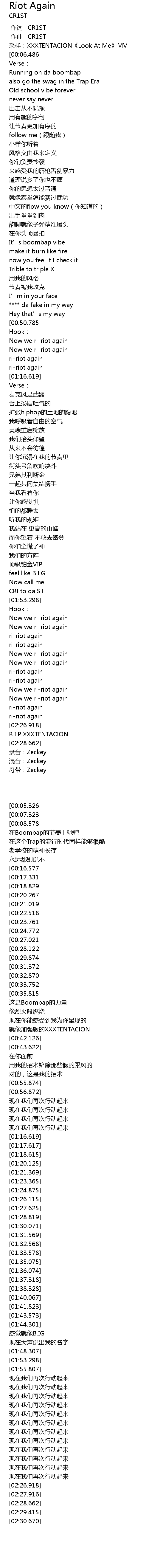 | [00:05.592] | 采样:XXXTENTACION《Look At Me》MV |