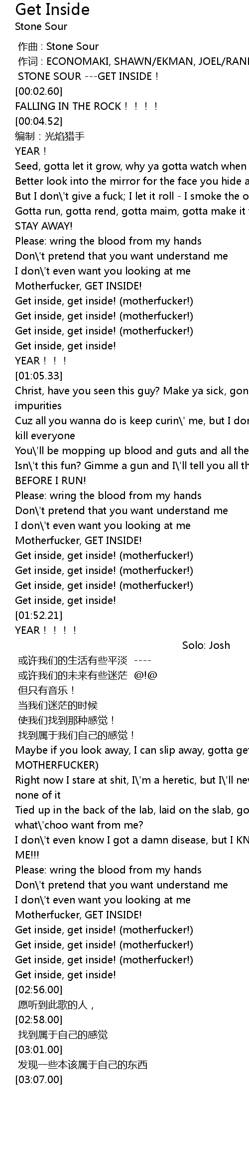 | [00:01.00] | STONE SOUR ---GET INSIDE! |