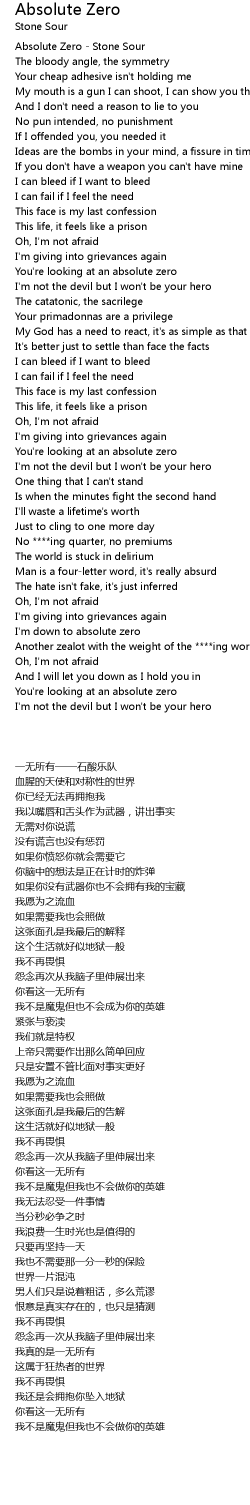 Absolute Zero - Stone Sour |