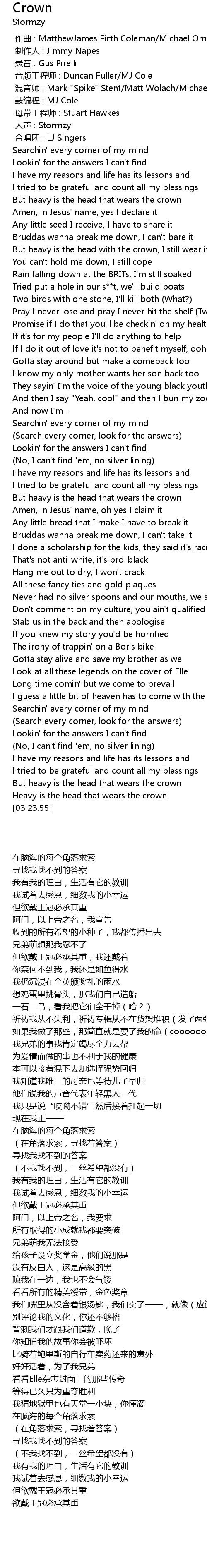 | [00:52.14] | But heavy is the head with the crown, I still wear it |