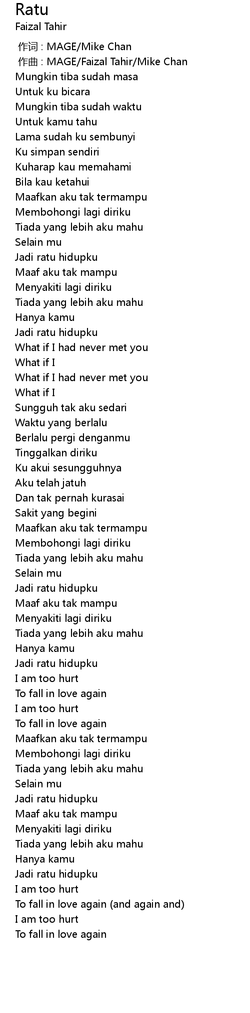 | [00:00.011] | zuo qu : MAGE Faizal Tahir Mike Chan |