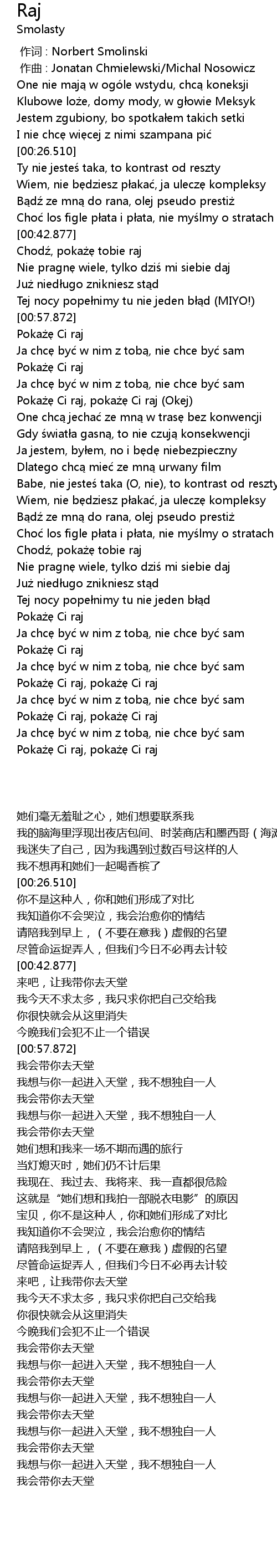 | [01:13.835] | Poka Ci raj, poka Ci raj Okej |