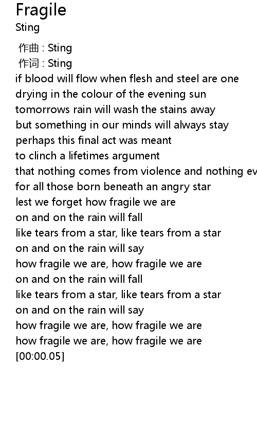 | [01:23.99] | lest we forget how fragile we are |