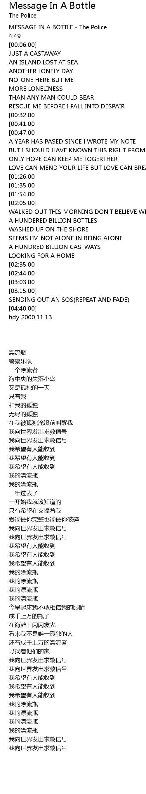 MESSAGE IN A BOTTLE - The Police |