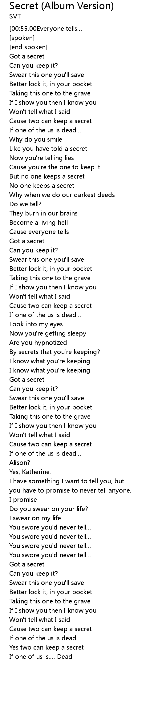 | [00:58.00] | Got a secret |