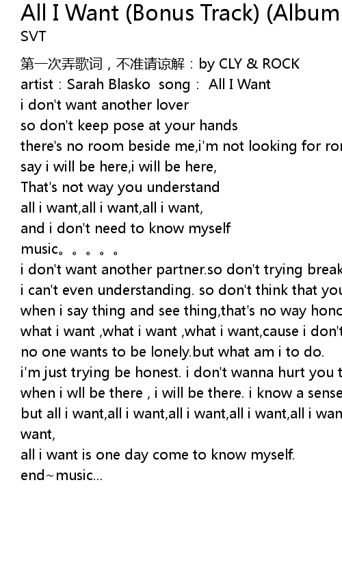 | [02:43.77] | but all i want,all i want,all i want,all i want,all i want,say all i want, |