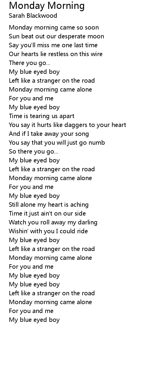 Monday morning came so soon |