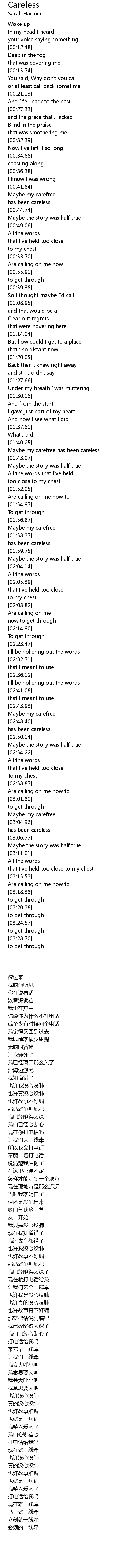 Maybe my carefree has been careless |