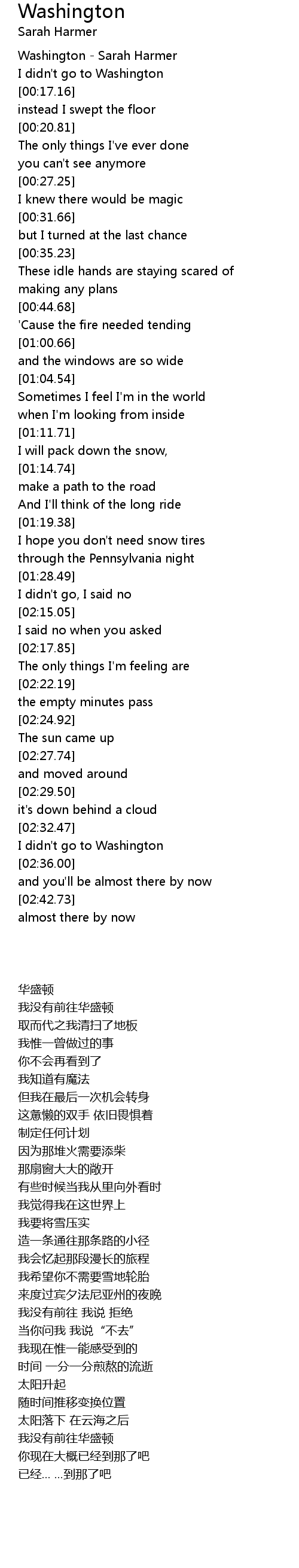 Washington - Sarah Harmer |