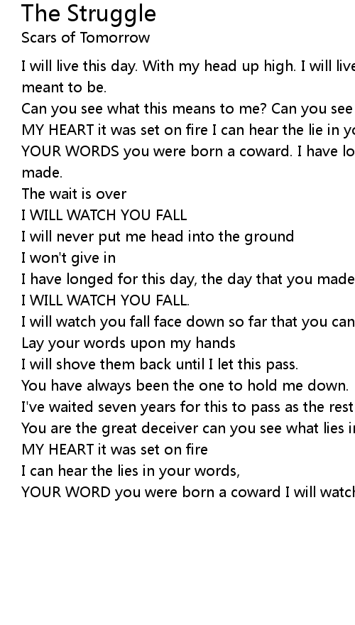 I will live this day. With my head up high. I will live this day, like it was meant to be. |
