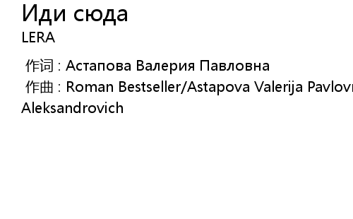 | [00:00.00-1] | zuò qǔ : Roman Bestseller Astapova Valerija Pavlovna Astapov Kirill Aleksandrovich |