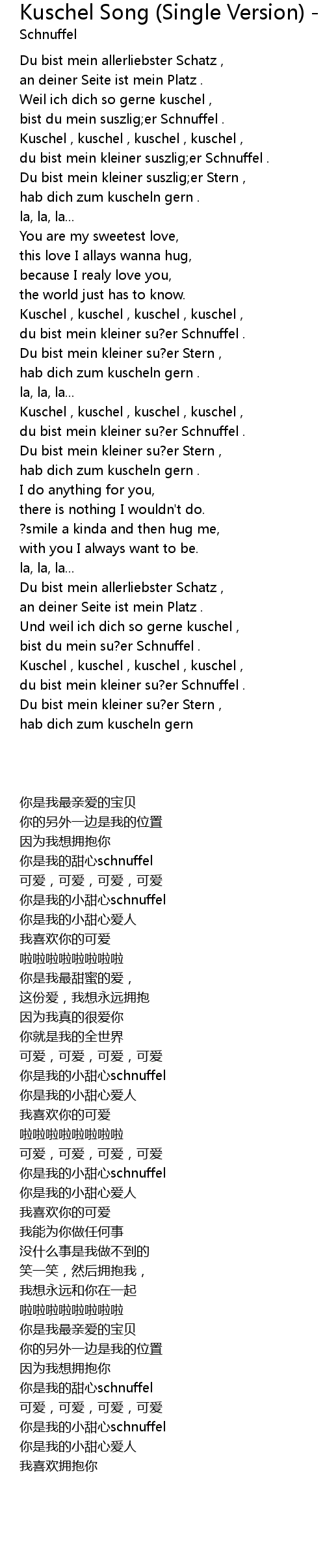 Kuschel , kuschel , kuschel , kuschel , |