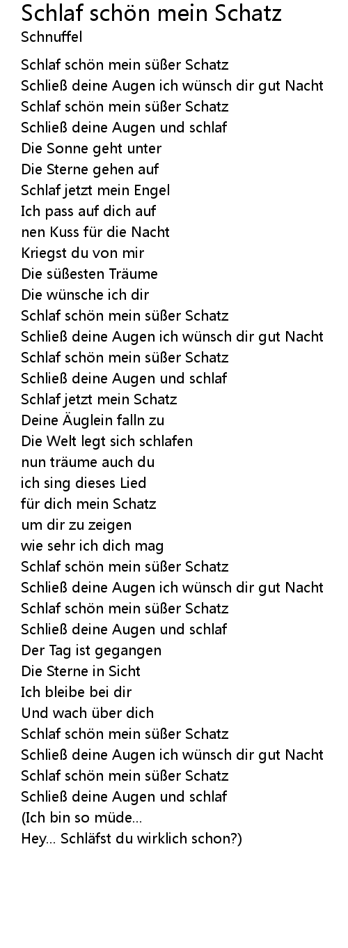 | Schlie deine Augen ich wü nsch dir gut Nacht | |