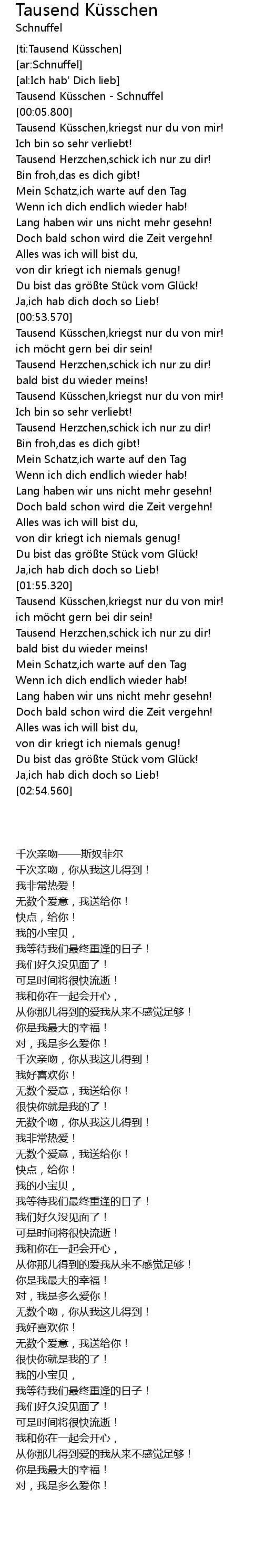 [00:01.500] Tausend Kü sschen Schnuffel
