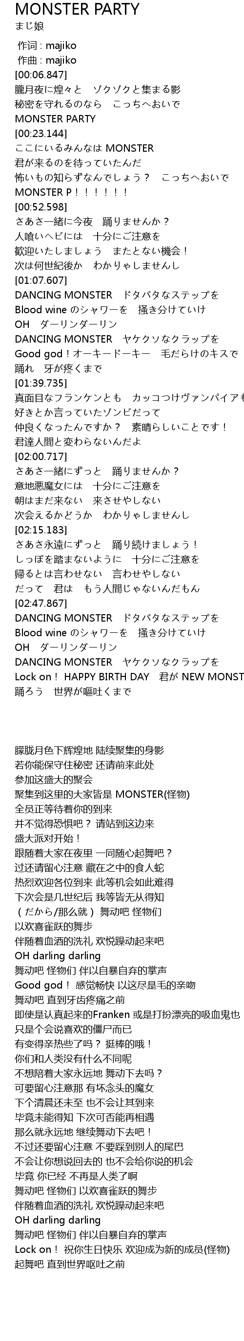 | [02:51.414] | DANCING MONSTER ドタバタなステップを |