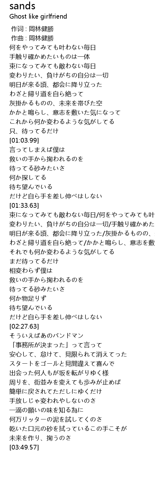 | [03:09.55] | 出会った何人もが坂を転がりゆく様 |