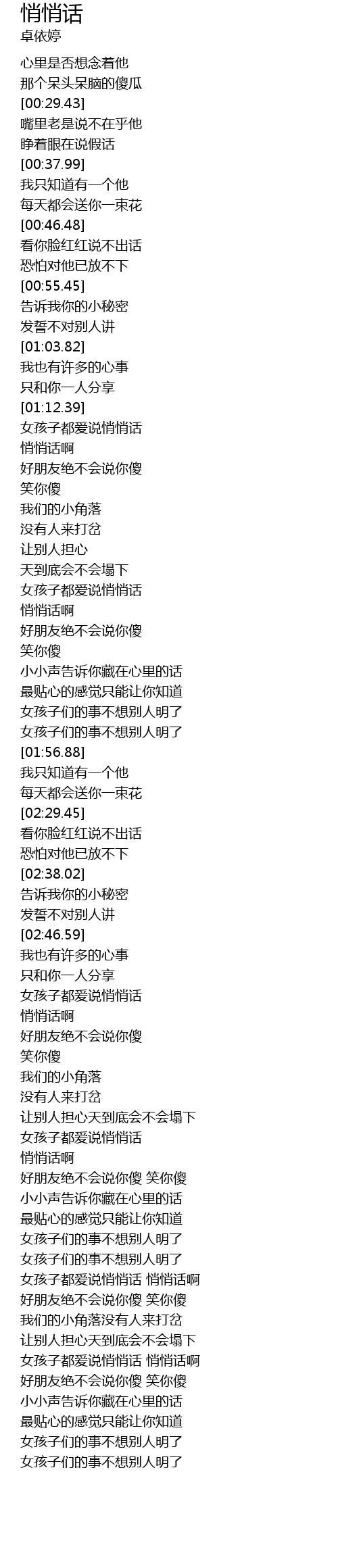 | [03:56.63] | 女孩子都爱说悄悄话 悄悄话啊 |