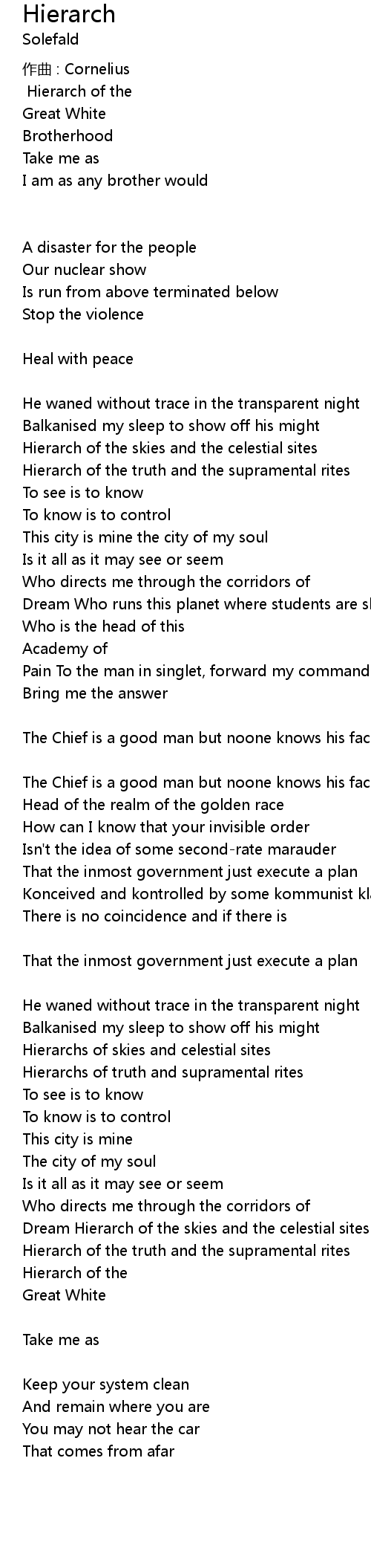 | Song | Hierarch |