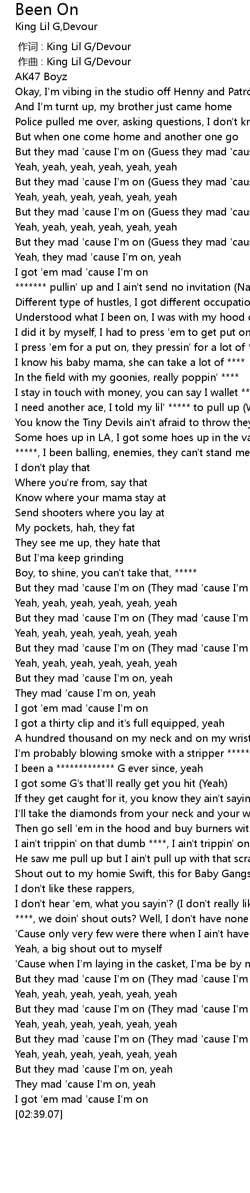 | [00:18.90] | But they mad 'cause I'm on (Guess they mad 'cause I'm on now) |
