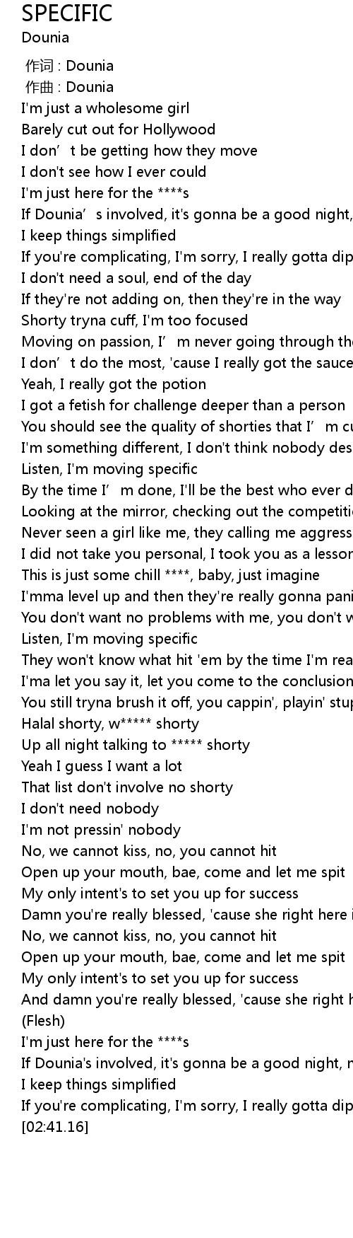 | [01:33.91] | Listen, I'm moving specific |
