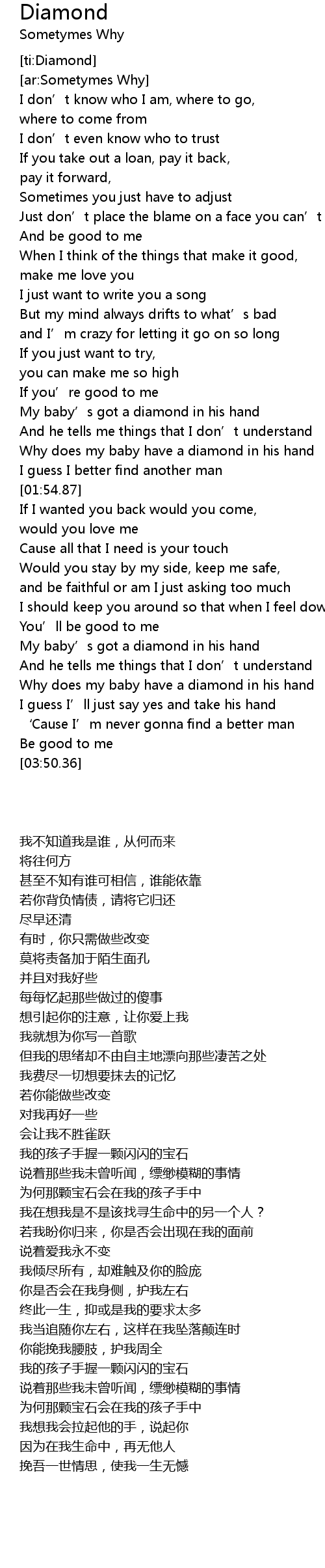 | [03:02.41] | My baby’s got a diamond in his hand |