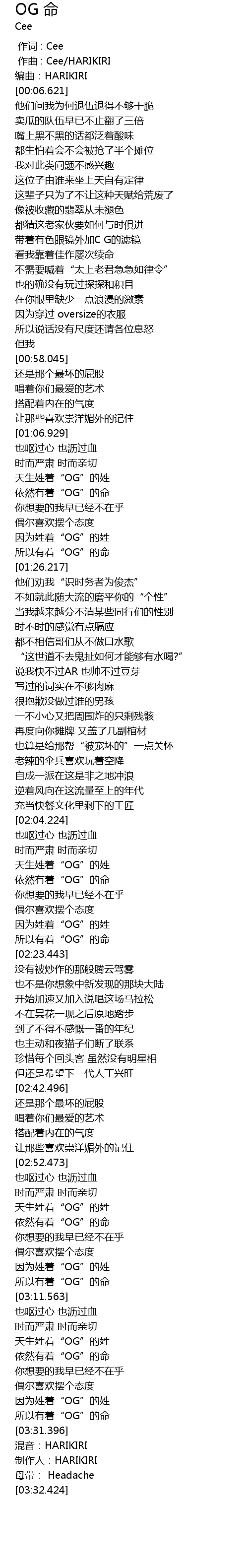 | [03:31.937] | 制作人:HARIKIRI |