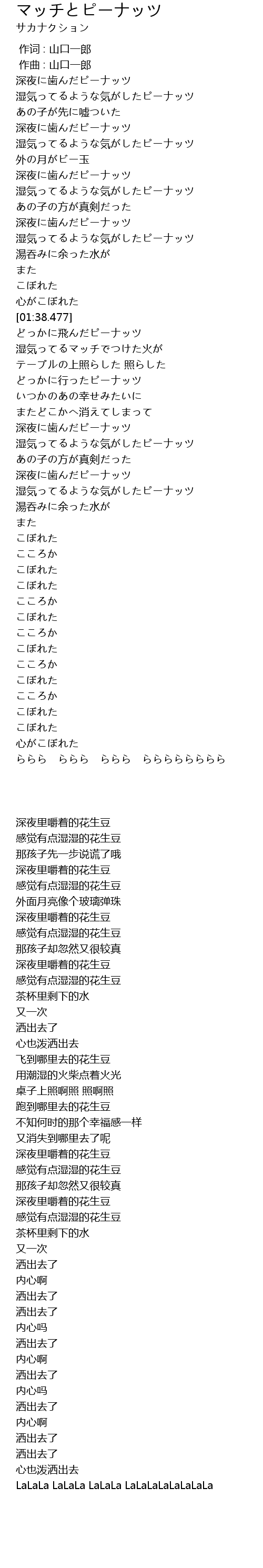 | [02:20.038] | 湿気ってるような気がしたピーナッツ |